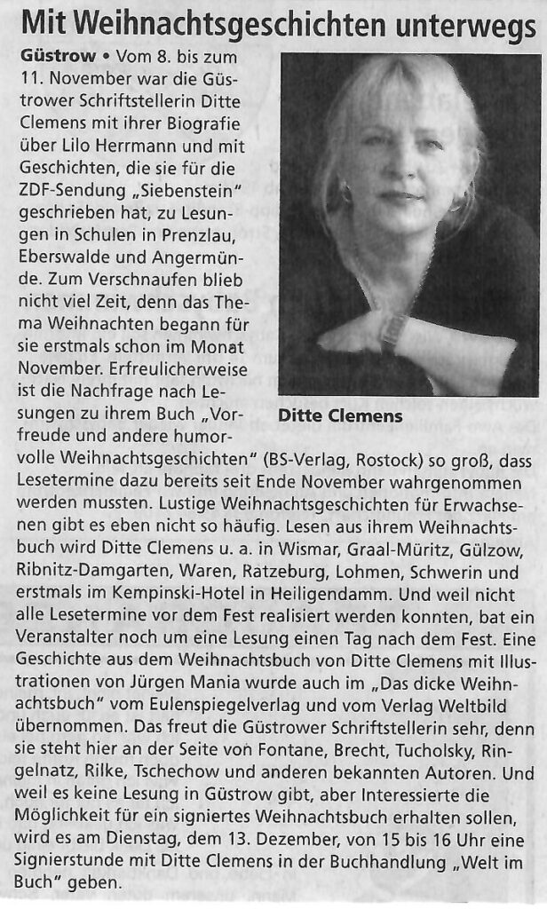 Vorfreude ohne Freude und andere humorvolle Geschichten zur Weihnacht. mit Illustrationen von Jürgen Mania. 1. Neuaufl. Allstedt: BuchHandelsGesellschaft, ISBN 978-3-946696-51-3